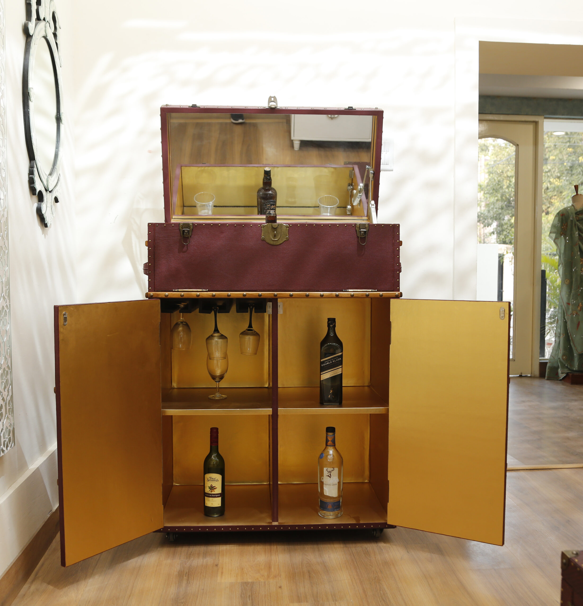 With its spacious design and premium craftsmanship, the Nascent Exports Leather Big Cabinet Bar is the ultimate choice for those who appreciate both style and function.